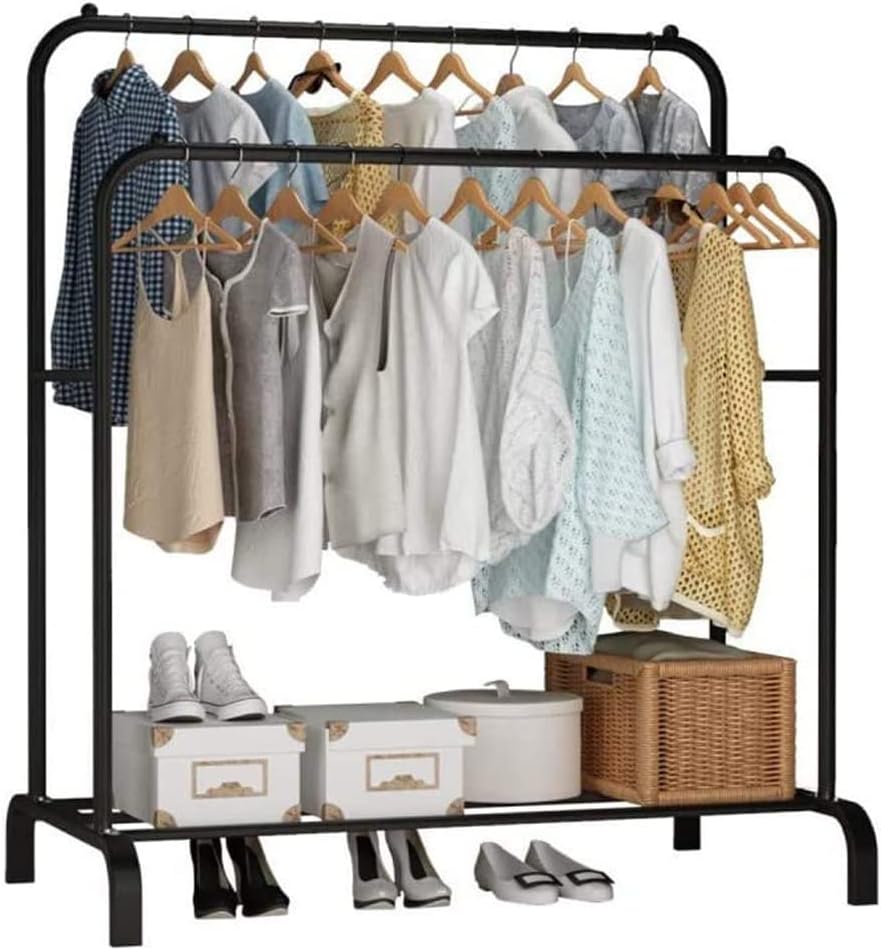 شماعة ملابس مونوبتيلون بقضبان مزدوجة 110 سم، شماعة ملابس معدنية، شماعة معاطف، شماعة أحذية، حامل سكة ملابس، منظم شماعات ملابس متعدد الأغراض (أسود)